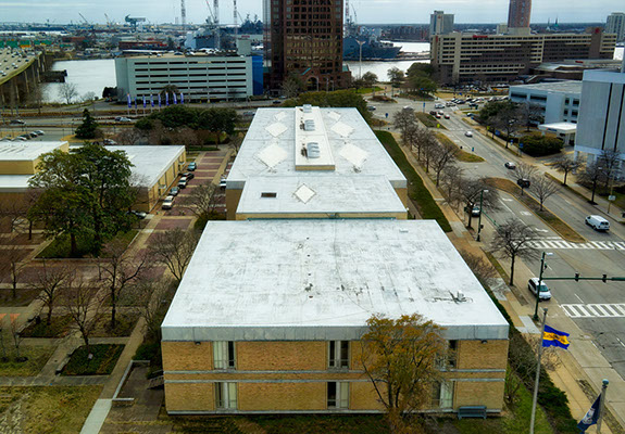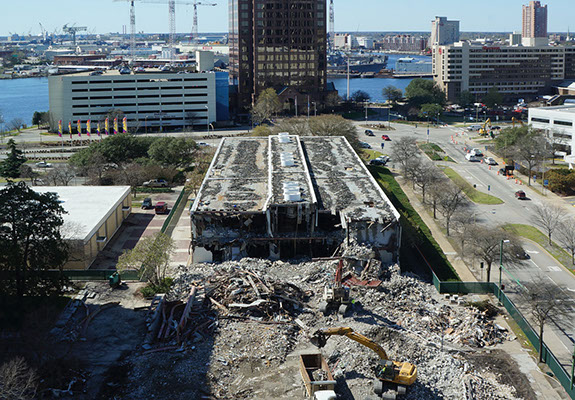 Demolition of the Circuit Court in Norfolk consisted of demolishing 102,500 square feet of the two story building in Downtown, including the steel framed underground basement. Heavy Demolition included recycling over 95% of deconstructed materials. Select Demolition required “soft” stripping the entire building, with complete removal of all materials throughout the structure that were not made of metal, brick, or concrete. Abatement included all friable and non-friable PCB, mercury, and asbestos. Over 3,715 tons of concrete were recycled. The building was less than 60 feet from City Hall, which remained open and active throughout demolition, with no interruptions.
