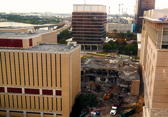 HEAVY DEMOLITION of multiple buildings and launch-pad facility as well as removal of asbestos and protection of active NASA Space Station communication lines running through crawl space of buildings selected for demolition. Job required disconnect of all electrical and cooling systems, site work, along with backfill and landscaping.